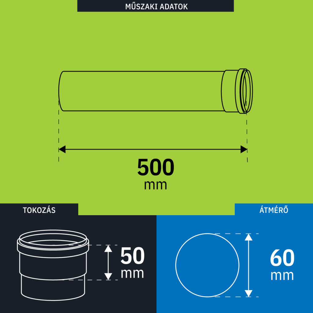 D60-as belső átmérő a legtöbb modern kondenzációs kazánnal kompatibilis.